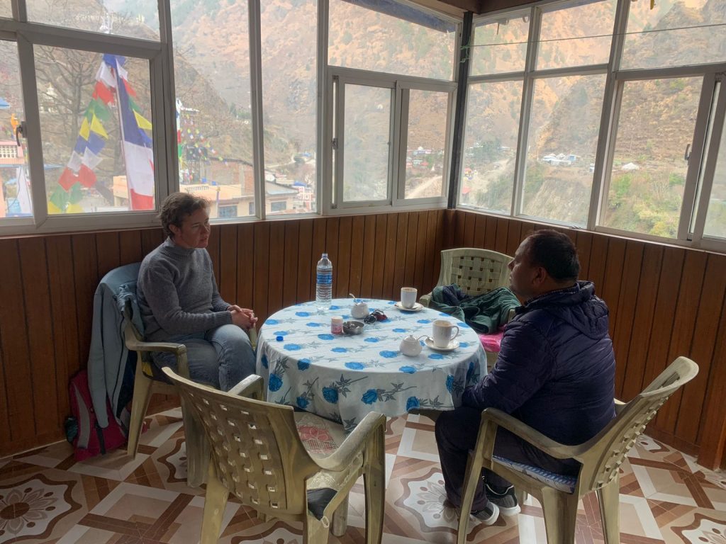 Am Sonntag bringe ich die Kinder zur Schule, Pramod ist mit nach Dhunche gefahren, um die benötigte Medizin zu besorgen, danach laufen Dawa und ich in den Nachbarort Briddhim, um einen Tee zu trinken. Auf dem Weg haben wir viel zu besprechen.